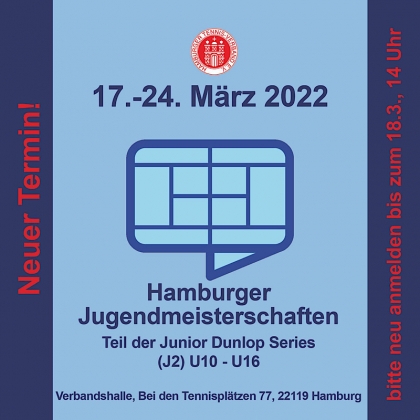 Für die Hamburger Jugendhallenmeisterschaften, die im Februar Corona-bedingt nicht stattfinden konnten, steht nun ein Nachholtermin fest. Das Turnier der J2-Kategorie wurde auf den Zeitraum vom 21. Bis 27. März 2022 verschoben. Gespielt werden in der HTV-Verbandshalle in Horn die Konkurrenzen U10 bis U 16 weiblich und männlich. Die Meisterschaften sind Teil der Dunlop Junior Series.