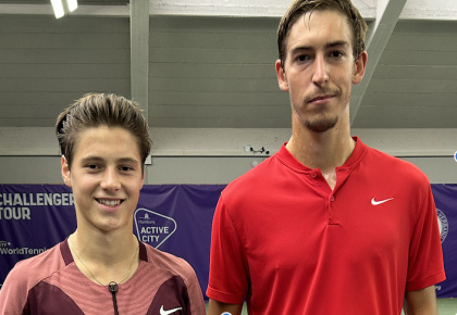 Aleksandr Braynin hat sich bei den Nord-Ost-Deutschen Meisterschaften den Turniersieg geholt. Der Ukrainer, der für Condor spielt, setzte sich in einem reinen Hamburger Finale mit 6:3 6:1 gegen Mika Petkovic vom Club an der Alster durch. Der 24-jährige dominierte von Beginn an mit seinem starken Aufschlag und präzisen Grundschlägen mit der Vorhand. "Ich habe gerade heute mein bestes Tennis gespielt. Ich bin sehr zufrieden, wie ich auch mit schwierigen Phasen umgegangen bin. Ich bin froh, dass Turnier gewonnen zu haben", so Braynin nach seinem Sieg. Petkovic, der sich im Halbfinale klar gegen Claus Piening durchsetzte, zollte dem starken Ukrainer Respekt: "Er hat heute wirklich stark serviert. Ich war im zweiten Satz auch etwas platt und konnte seinem Tempo nichts mehr entgegensetzen. Aber mit meinen Leistungen im Turnierverlauf bin ich sehr zufrieden." Braynin, der für seinen Sieg mit einem Preisgeld in Höhe von 1500€ belohnt wurde, schlägt in den kommenden Wochen bei Future Turnieren auf. Für den 16-jährigen Petkovic geht es nach den Verbandsmeisterschaften nach Amerika, wo der Rechtshänder an ITF Juniors Turnieren teilnehmen wird.