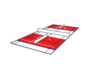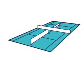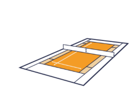 Midcourt: 18m x 6,40m | orangene Bälle (Stage 2): 50% druckreduziert | Schlägerlänge: 58-66 cm